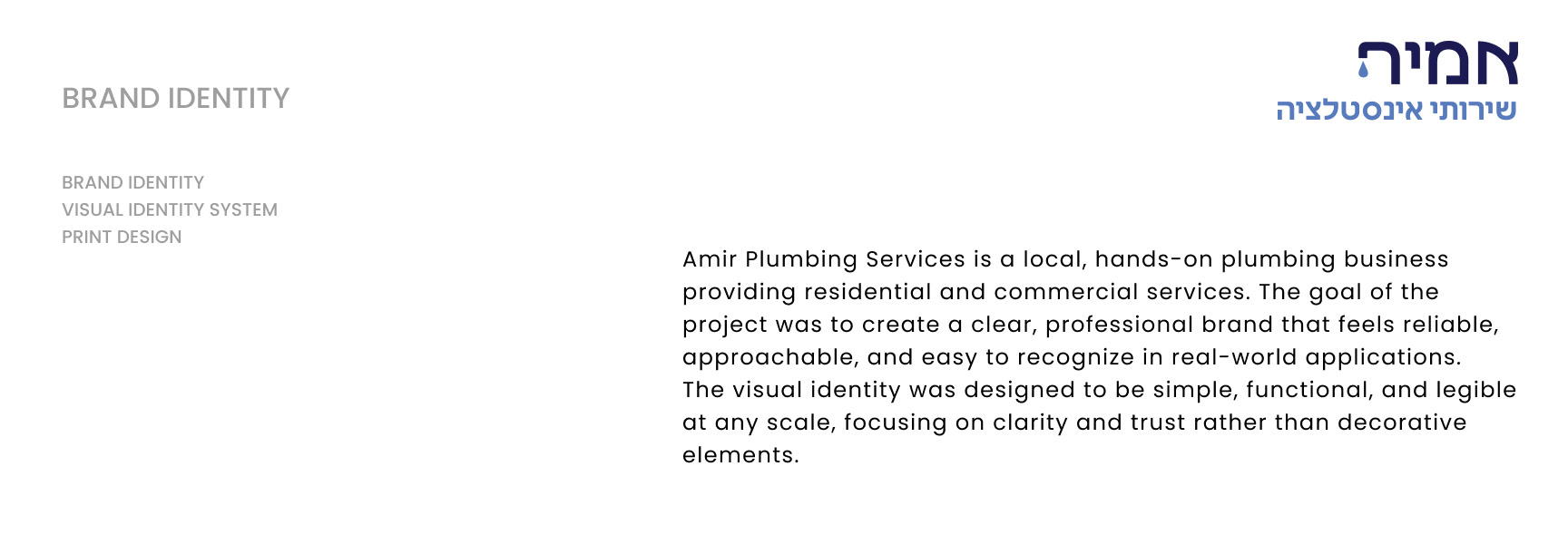 A straightforward brand identity for a local plumbing service, designed to communicate professionalism, reliability, and clarity through simple, functional design choices.